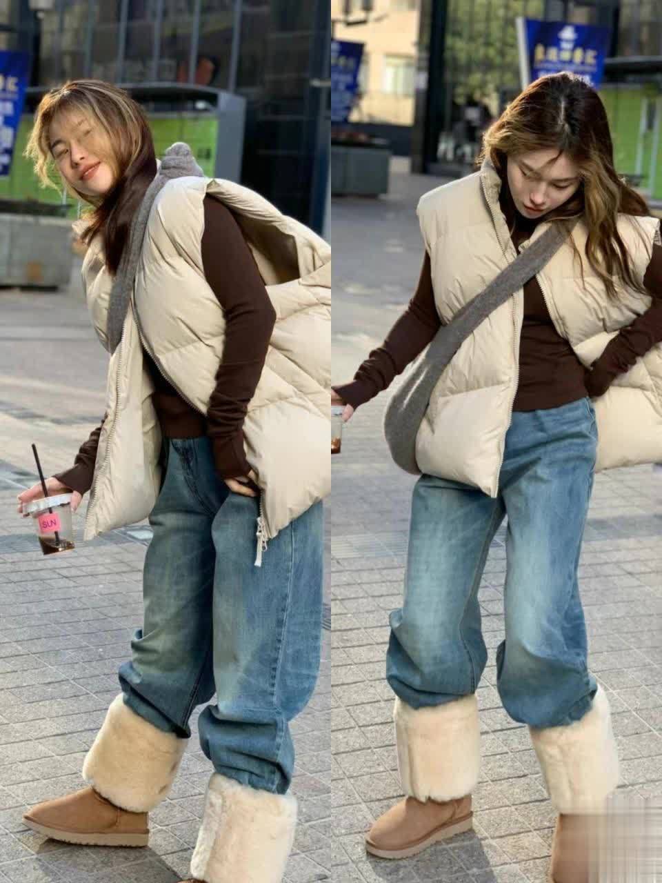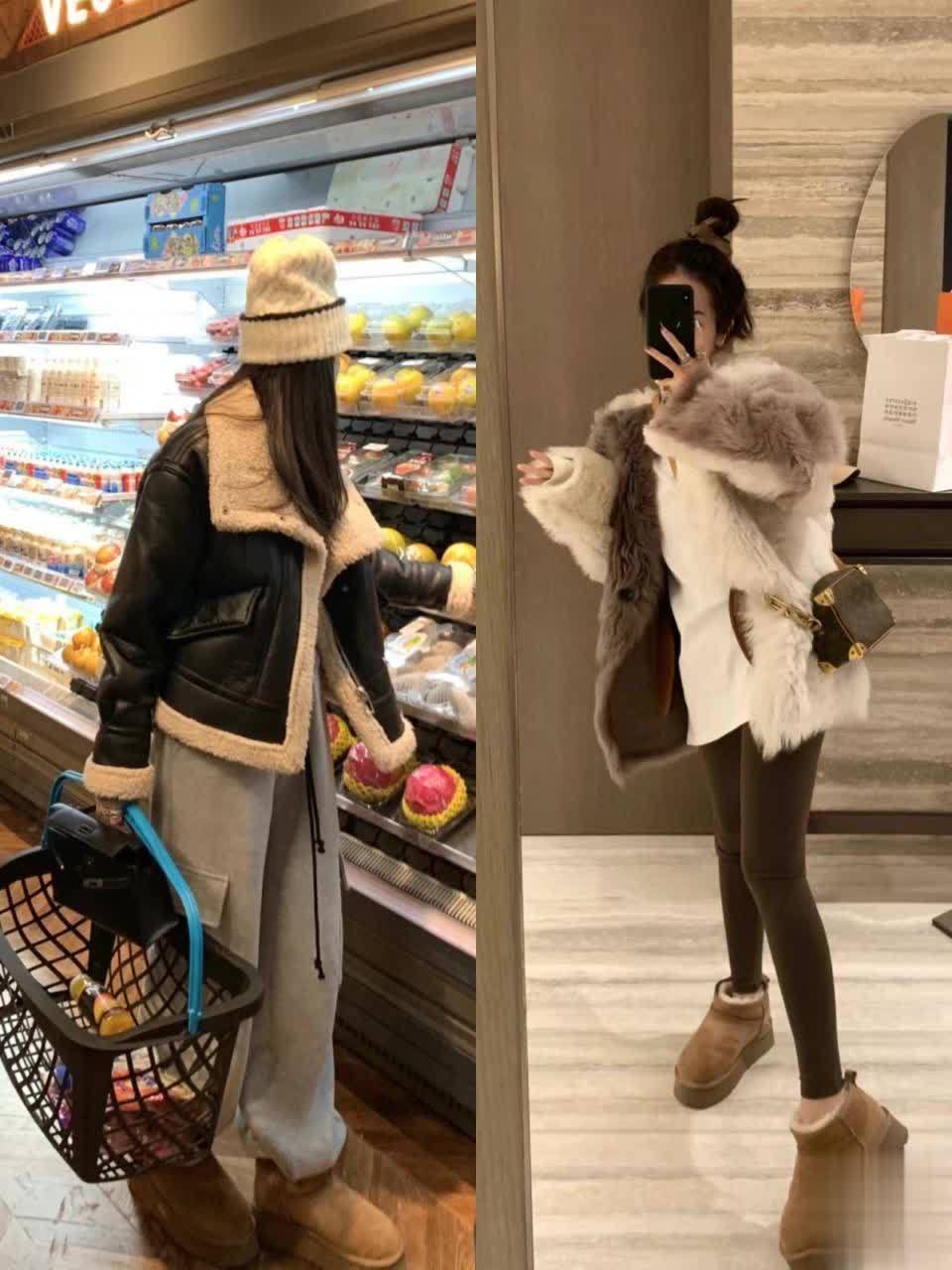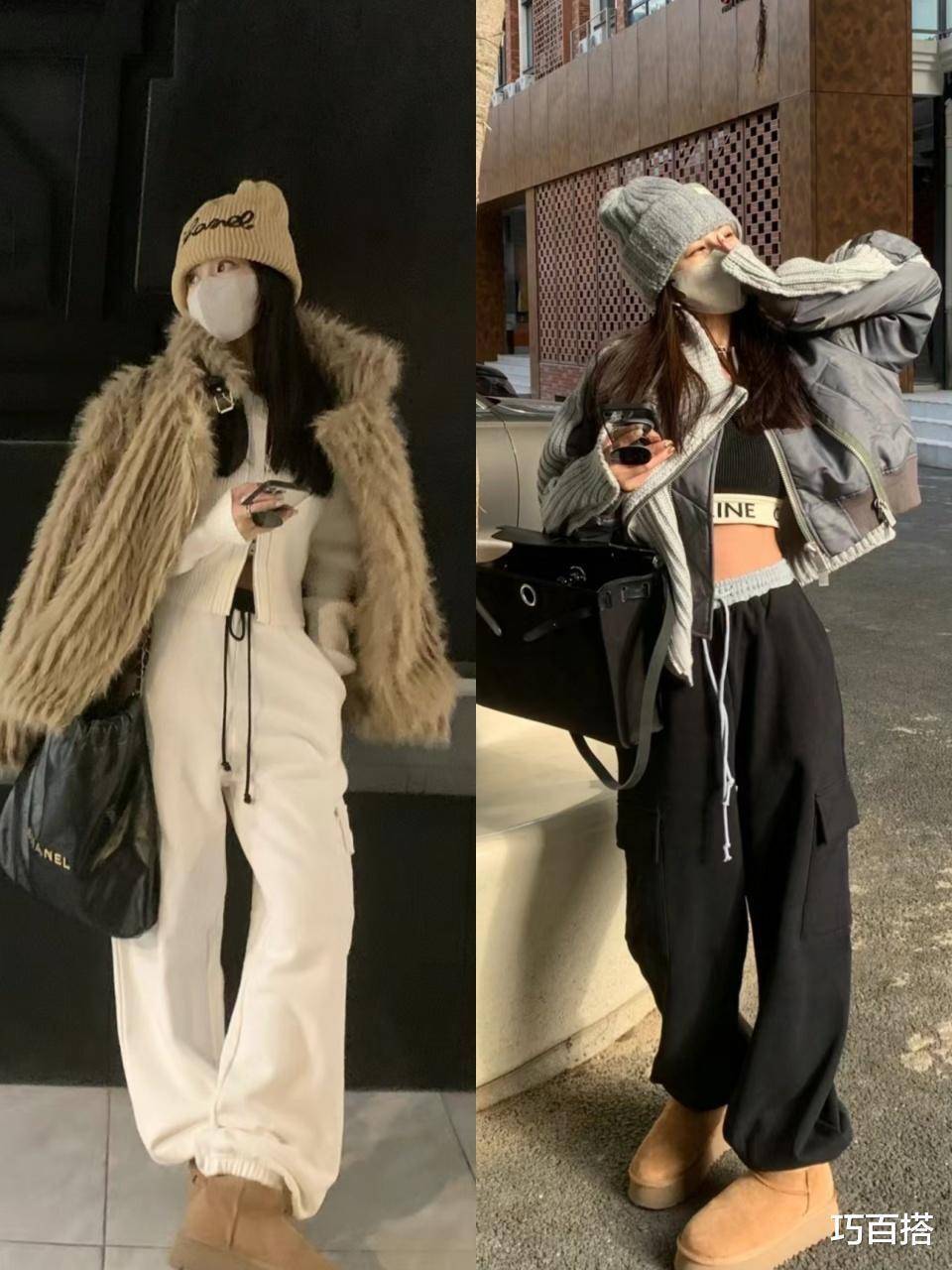 一款是用加厚款毛绒单品与之搭配,另一款是选择羽绒服与之搭配,喜欢毛绒外套的姐妹,可以照搬照抄博主身上这套造型,下搭运动裤和雪地棉,慵懒又有氛围感,成熟的同时又不会过于刻板。